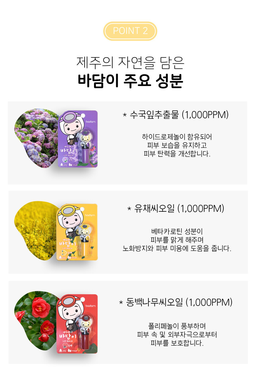제주 바담이 립밤 수국 동백 유채